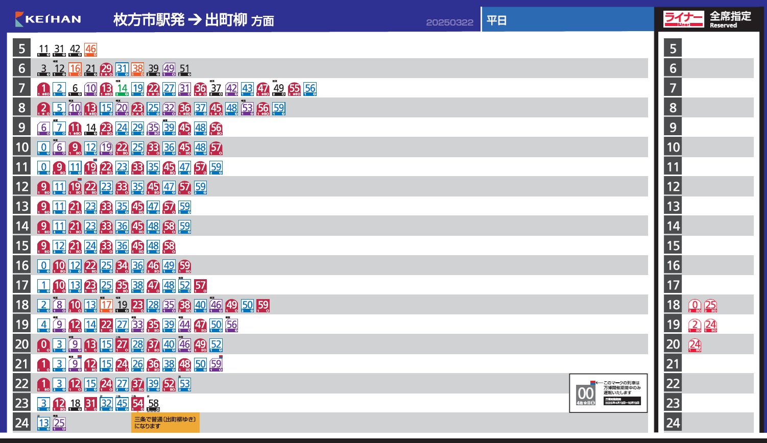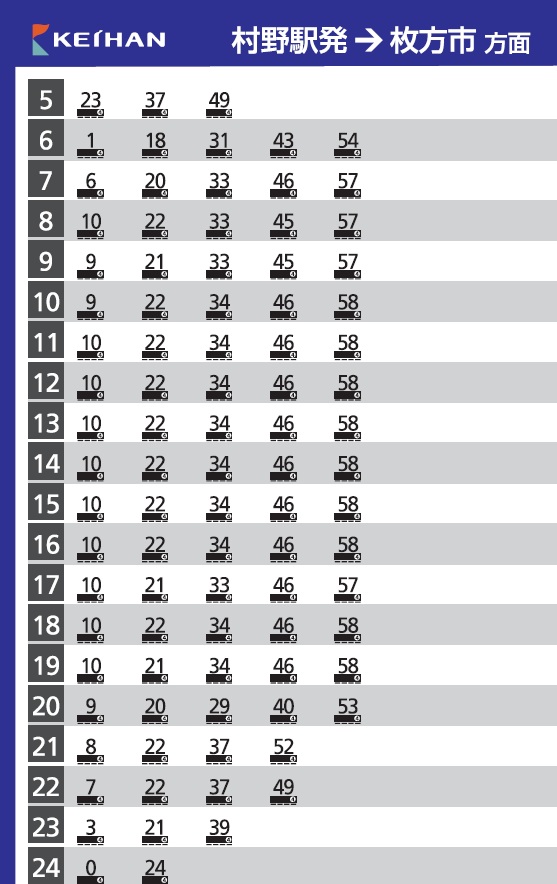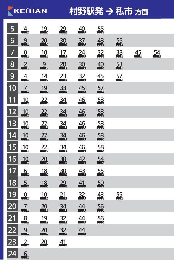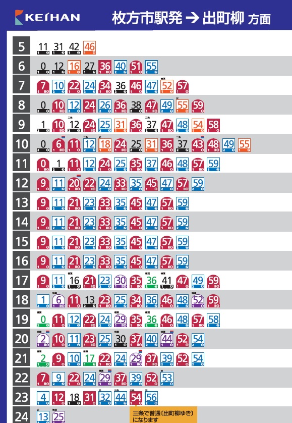 京阪の駅時刻表(2025年3月22日改正)