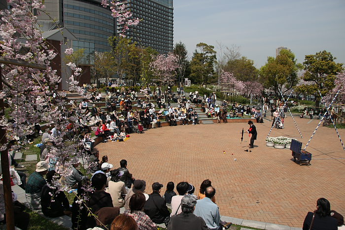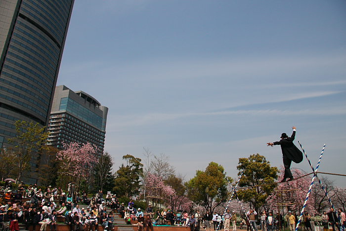 | 家族で大川へ。天満橋はけっこうな人。出店に立ち寄りながらOAPまで行くと大道芸をやっていた。けっこうおもしろくて中身もある。終わると子供たちに千円札を持っていかせた。昼食はとうもろこしと焼き鳥にビール。子供たちが楽になったのでビールも飲める。天満橋のミドリ・京阪百貨店で買い物をして帰る。 |