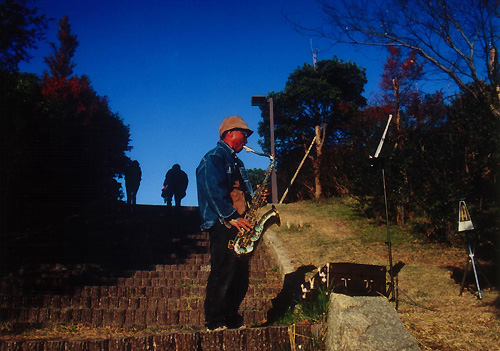 | 2001.12.9 大阪南港 弓子が友人宅へ子供たちを連れて行くとのことで、大阪市内の家近くで降ろし、ひとりで南港へ。最初は曇っていたが、そのうち晴れてきた。 退職後トランペットを練習しているという老人に出会い、撮影させてもらう。まとめ方にまだまだ勉強しないといけないと、上がりを見て痛感。 Canon New F-1 FD28mmF2 TRI-X、E100VS |