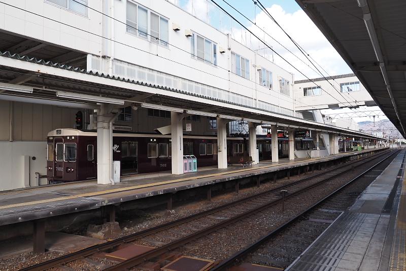宝塚方面ホームより。右側は当駅止まりの普通列車。