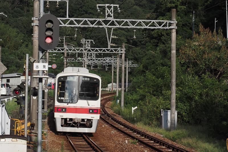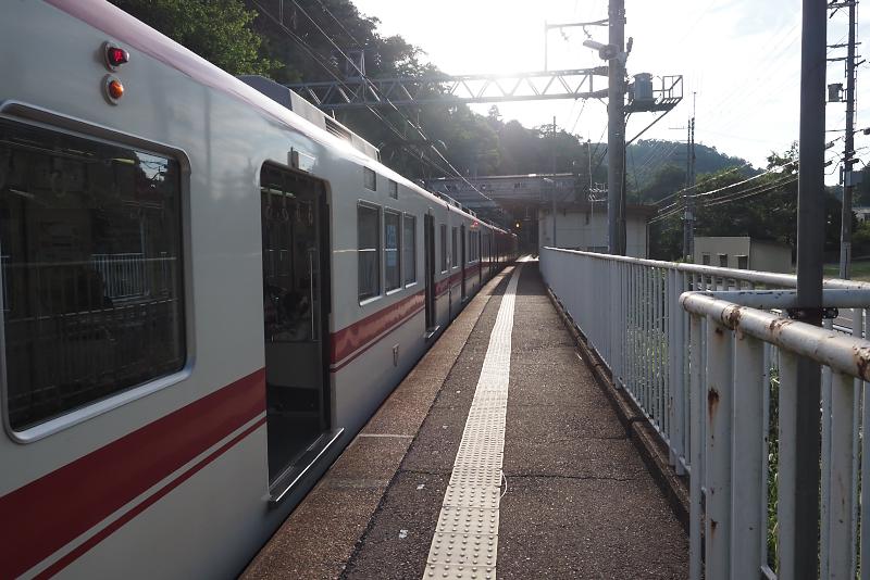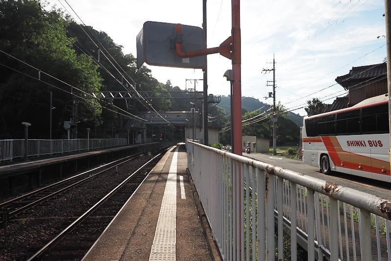 粟生方面から列車が到着