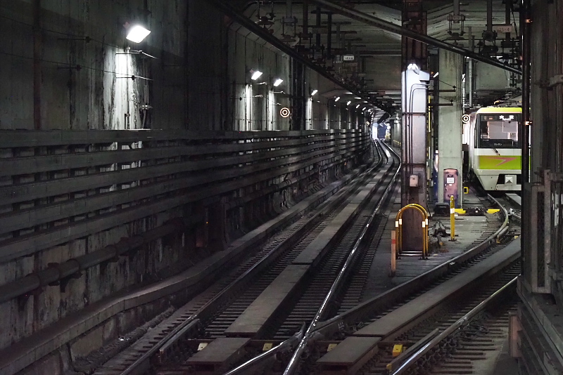 門真南側に引き込み線がある。大正ゆき表示の列車が停車中