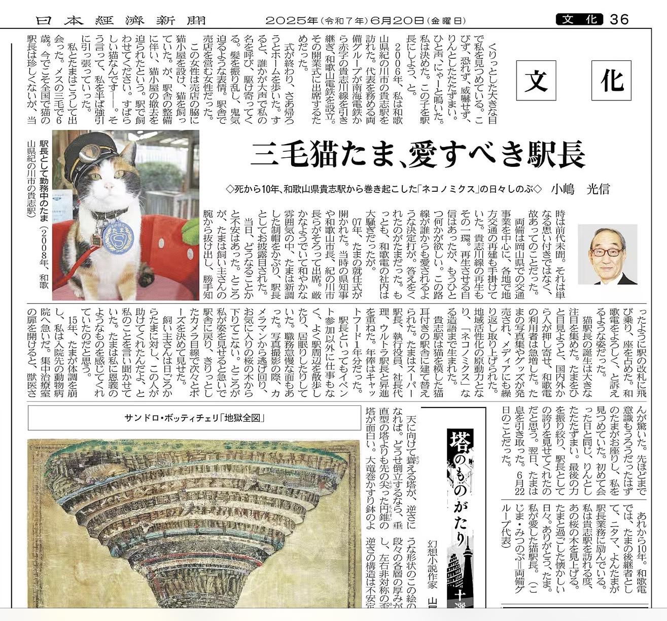 2025.6.20 日本経済新聞 和歌山電鐵・小嶋社長の猫駅長に関する記事
